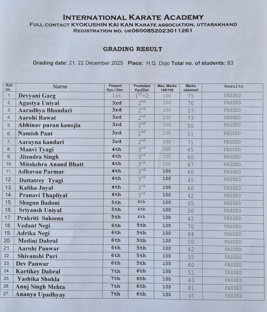 Full Contact Kyokushin Kai Kan Karate Association, Uttarakhand